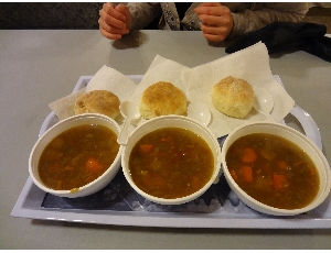 スープとパン。今日はホワイトフィッシュのしょっぱいスープ。おいしい。