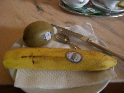 なんかパンとチーズやハムとフルーツのセットがあったので、素敵な朝食だわ!とそれを注文。